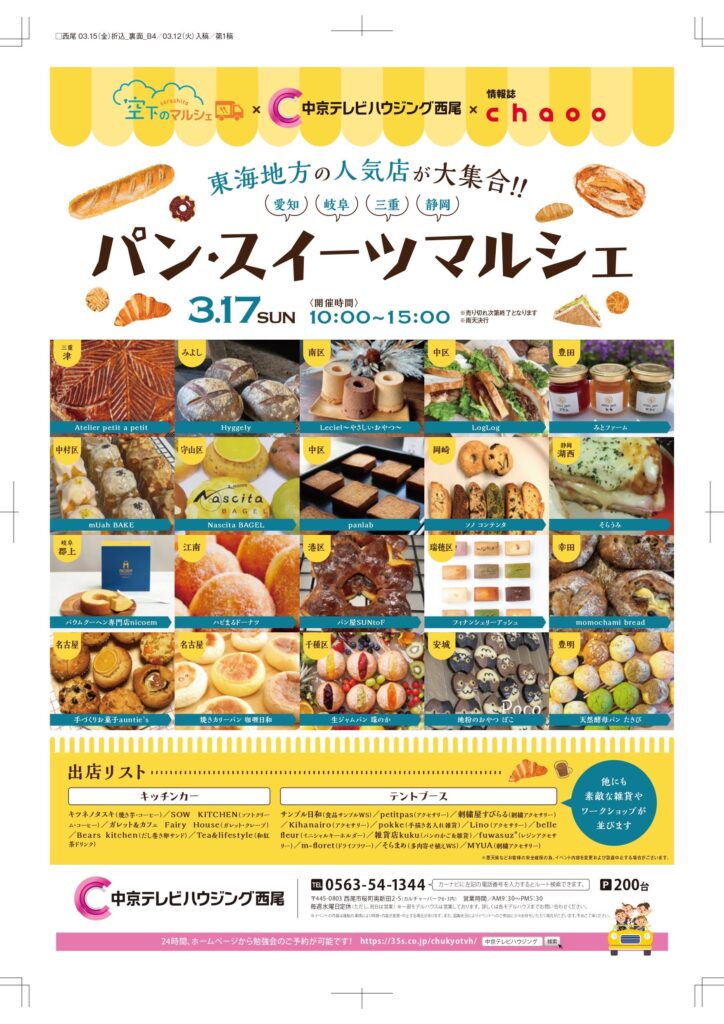 3月17日には、中京テレビハウジング西尾で開催される「パン・スイーツマルシェ」に出店します。